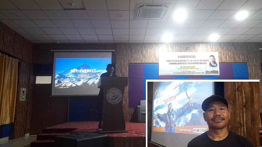 लुम्बिनी – दुबै खुट्टा गुमाएर पनि सगरमाथा आरोहण गरेका हरि बुढामगरले आफ्नो अनुभव सुनाउँदै विद्यार्थीलाई उत्प्रेरणा प्रदान गरेका छन्। लुम्बिनी बौद्ध विश्वविद्यालय अन्तर्राष्ट्रिय समन्वय विभागको आयोजनामा मंगलबार भएको कार्यक्रममा उनले विभिन्न विद्यालयका १२ कक्षाका विद्यार्थीहरुलाई आफ्नो अनुभव सुनाएका हुन्।