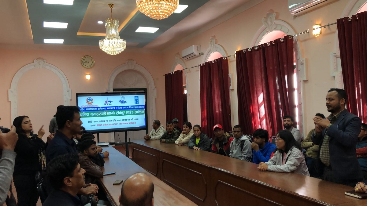 काठमाडौं – नेपालको पर्यटन क्षेत्रलाई सबैका लागि समान, पहुँचयोग्य र अवसरमूलक बनाउन पहिलो पटक श्रवणविहिन व्यक्तिहरूका लागि ट्रेकिङ गाइड तालिम सुरु गरिएको छ। नेपाल पर्यटन बोर्ड र संयुक्त राष्ट्रसंघीय विकास कार्यक्रम (यूएनडीपी) को सहकार्यमा सञ्चालित दिगो पर्यटन परियोजना (एसटीपी) को सहयोगमा राष्ट्रिय बहिरा महासंघ नेपाल (एनडीएफएन) र नेपाल पर्यटन तथा होटल व्यवस्थापन प्रतिष्ठान (नाथम) ले संयुक्त रूपमा यो तालिम सञ्चालन गरेका हुन्।